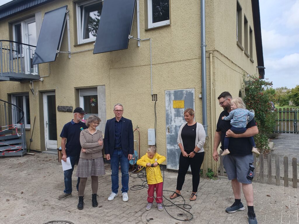 Die Montage erfolgte an einem Samstag Vormittag. Mitglieder der Genossenschaft brachten die Solarpaneele an der Hauswand des Gebäudes an und führten die technische Messungen durch – alles ehrenamtlich und mit fachlicher Expertise. Die eingespeiste Energie soll fortan einen Teil des Strombedarfs des Kindergartens decken und CO2 einsparen.